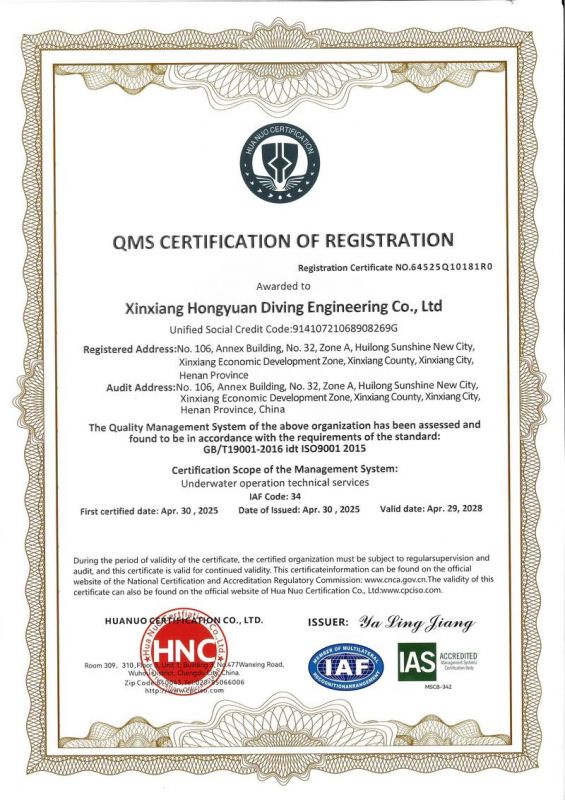 新鄉(xiāng)市鴻源潛水工程有限公司,有從事潛水行業(yè)二十多年的潛水團隊。公司具有獨立法人資格,注冊資金600萬元。   公司的潛水人員、潛水檢測人員、潛水焊接人員均經(jīng)過正規(guī)培訓,全部持有國內(nèi)權威機構頒發(fā)的資質(zhì)證書。我公司水下焊接可靠,質(zhì)量優(yōu)良,技術過硬,可水下焊接鋼管樁,水下焊接犧牲陽極鋅塊,水下焊接連接梁,水下封堵焊接等等施工,報價合理,拒絕暴利,竭誠為您服務!水下電焊工程,水下電焊報價合理水廠電廠的水池、水道清淤、泵房清理、管道鋪放、攔污柵清污、更換閘門起落、導流洞、水庫壩體等維修施工水下補強加固:對水利電力系統(tǒng)水庫、大壩及沿海內(nèi)河港口、碼頭等水工建筑物水下鋼結構或混凝土結構缺陷進行。無論是對現(xiàn)在或?qū)恚紝⑹且豁椃浅S幸饬x的工作。水下焊接將成為水下作業(yè),水下安裝,水下維修等水下作業(yè)工程中不可或缺的重要工藝手段.公司堅持“先進的技術設備.優(yōu)質(zhì)的服務質(zhì)量.服務效率.熱情的服務態(tài)度,為生產(chǎn)經(jīng)營理念,以拒絕暴利合理收費為原則立足全國市場。我們將以優(yōu)質(zhì)的產(chǎn)品與售后服務來打造用戶良好體驗。愿同新老客戶竭誠合作、互惠互利、共創(chuàng)輝煌!水下電焊工程,水下電焊報價合理,鋼圍堰清淤公司鴻源-水下電焊工程,水下電焊報價合理,鋼圍堰清淤公司,水下電焊工程。      新鄉(xiāng)市鴻源潛水工程有限公司我公司成功打造鴻源優(yōu)質(zhì)服務。公司的潛水人員、潛水檢測人員、潛水焊接人員均經(jīng)過正規(guī)培訓,全部持有國內(nèi)權威機構頒發(fā)的資質(zhì)證書。經(jīng)過多年經(jīng)營,公司具備公司具有獨立法人資格。